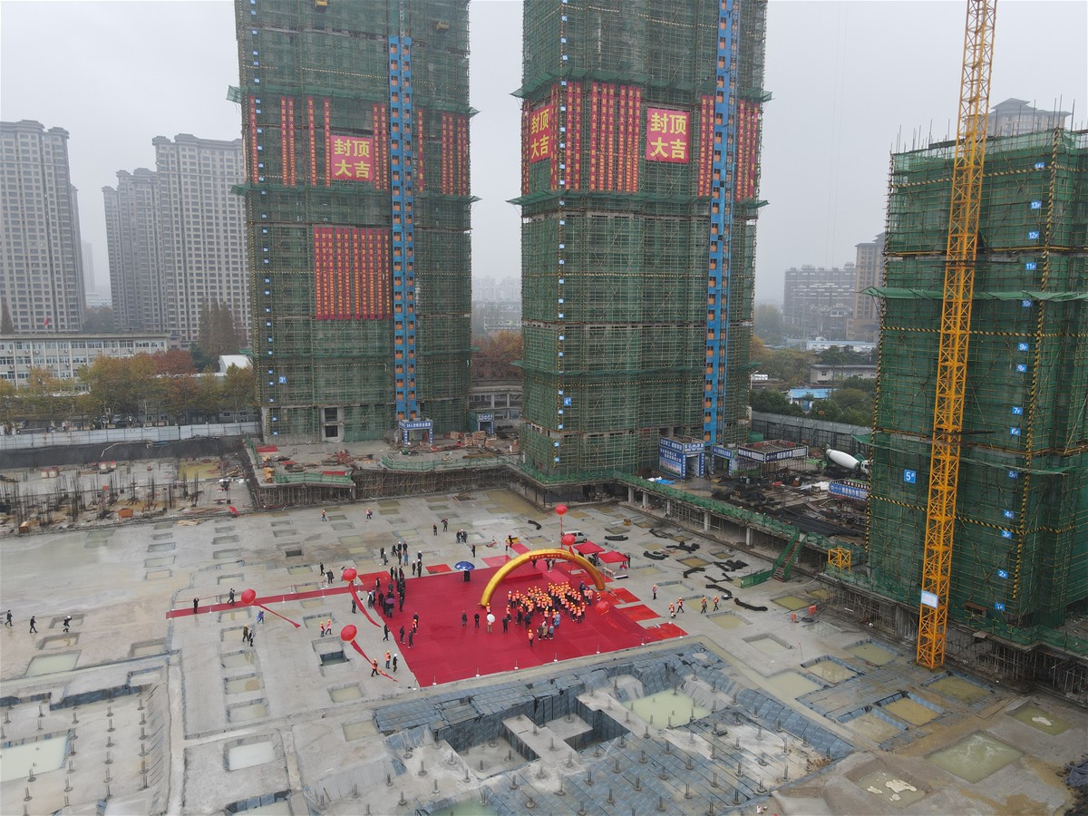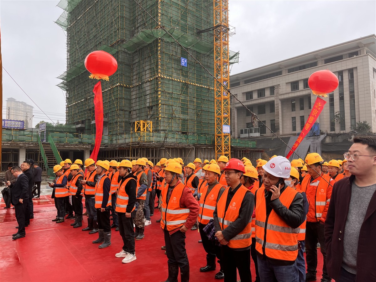 仪式上,华泰建设常务副总经理周立辉致辞:自今年6月26日开工奠基以来,历时149天,完成了3#、4#楼主体结构的封顶,这标志着该项建设工程取得了重要的阶段性胜利。细节见证品质,精工确保质量。从项目正式动工开始到各项基建工作,在标准化管理流程和安全规范下,华泰对建筑材料、施工队伍、工艺工法等事关品质的每一个细节,都予以了更严谨、精确的把控与质检,全面确保工程质量规范化、制度化、专业化,将精工品质贯彻到底。从严按照目标不变、任务不减、要求不降的原则,坚决保证建设品质,达成各项指标。